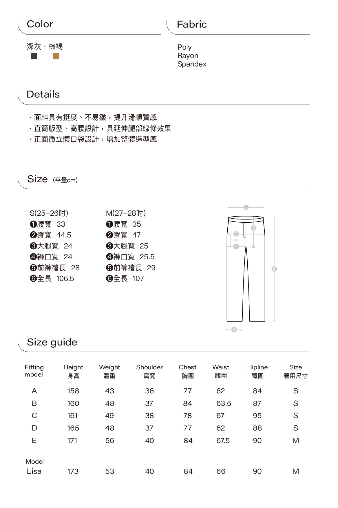 質感西料口袋直筒長褲 (棕褐)